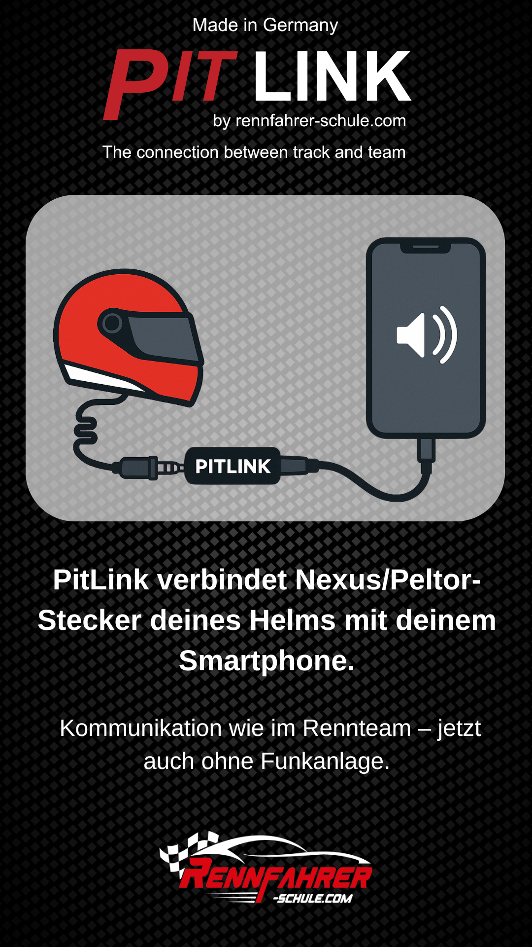 PitLink ist ein speziell belegtes Verbindungskabel, das deinen Helm mit Nexus/Peltor-Stecker direkt an dein Smartphone (USB‑C) anschließt. Kein Umbau – einfach einstecken und sprechen.